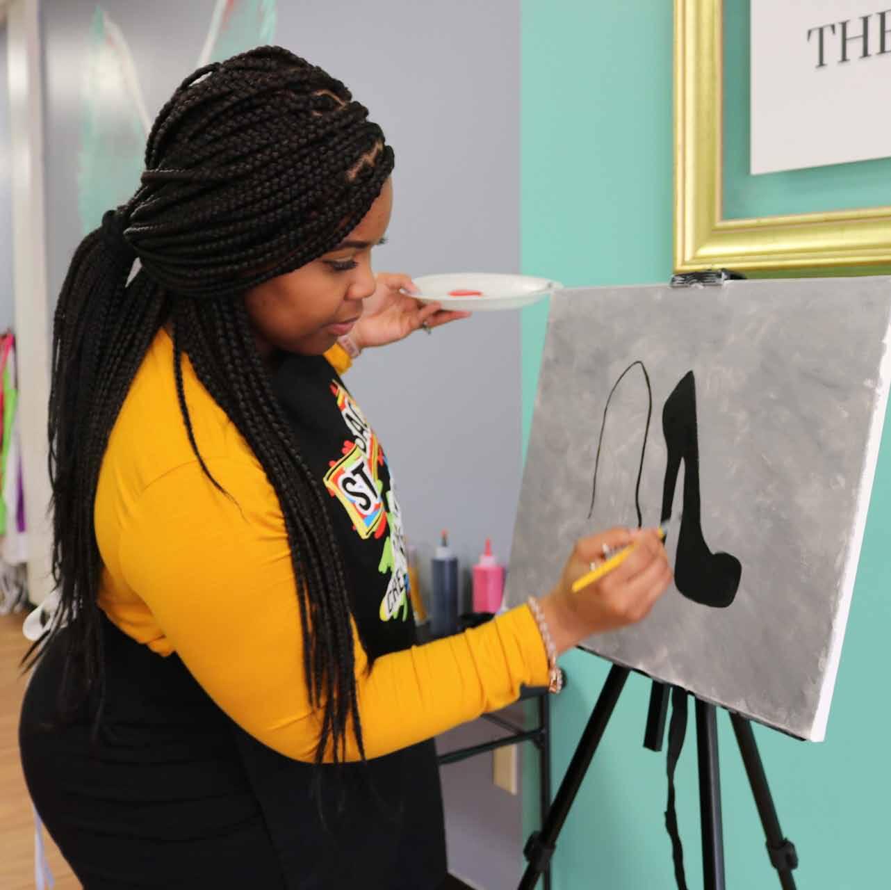 In 2016, owner Tequila Canty started a traveling sip and paint business and often hosted private parties on location at the homes and businesses of her clients. While doing private parties she was often asked if she owned her own building to have parties. She began to realize the need for a creative space for people to visit. Soon after, The Art Lounge was born in October 2018.