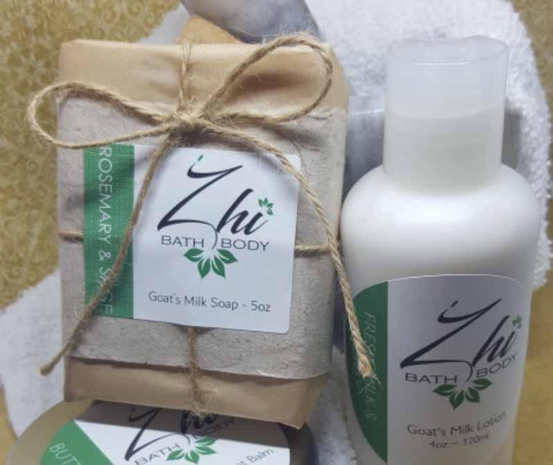 The next year, she crafted body lotion, hand and body wash, and soap, each from goat’s milk. Kim began selling her new skincare line, called Zhi (pronounced ‘Chee’) Bath and Body, at a women’s expo. Unfortunately, her sales were disappointingly low but her sample supply had diminished. She knew she was on to something but needed to continue working on it. Since then she has created other products made from organic mango butter, shea butter, cocoa butter and many other natural ingredients.