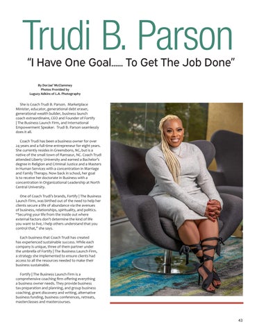 She is Coach Trudi B. Parson. Marketplace Minister, educator, generational debt eraser, generational wealth builder, business launch coach extraordinaire, CEO and Founder of Fortify | The Business Launch Firm, and International Empowerment Speaker. Trudi B. Parson seamlessly does it all.