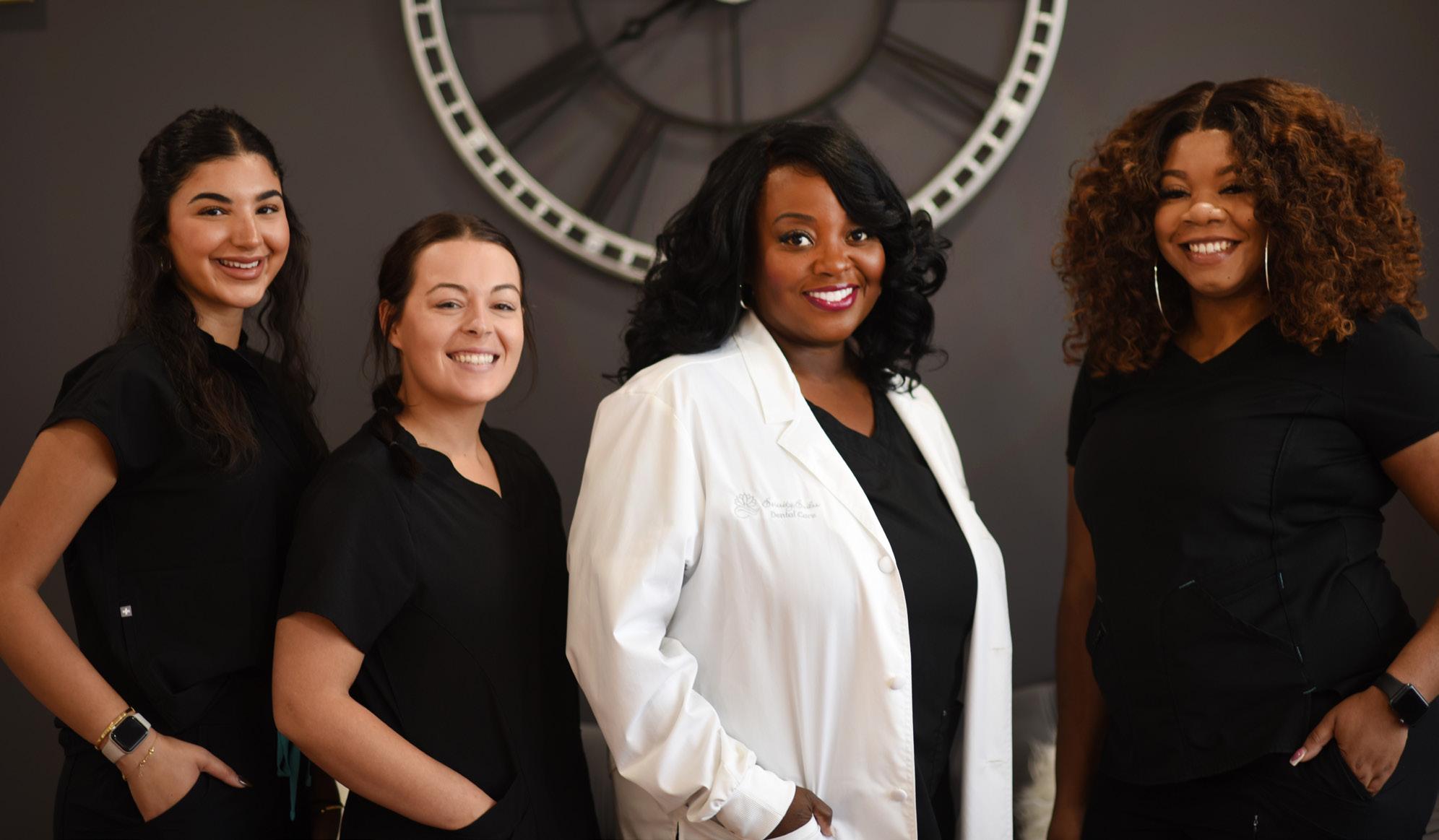 After working for other practices for a period of time, the opportunity for Dr. KL Burns to have her own became a reality. She says, “I had a dream about what I wanted my office to look like and the atmosphere I wanted for anyone who walked in. I dreamt of an office that didn’t look, feel, or smell like your typical dental office. As a result, when patients walk in my office, they’re first greeted by our aromatherapy, embellished in calmness and tranquility. The walls are a relaxing lavender gray, and when you’re in the chair, you are surrounded by either rainfall or ocean sounds and the visuals on the television screen. We also offer noise-canceling headphones for those patients who are more comfortable listening to music from their phones. I also treat patients who suffer from dental anxiety and phobias, as I intend to make everyone’s dental experience as pleasant and relaxing as possible,” she says.
