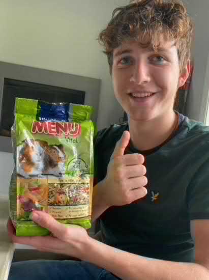 In verband met zijn enorme krullende kuif, kreeg Bas een zak snoep, cavia voer! Maar het schijnt dat de cavia van zijn hoofd is verdwenen en nu ergens onder de kappersstoel ligt….