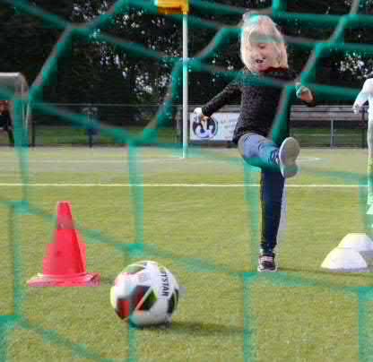 De Gigantjes makenookvanhetversteveldoponssportparkeengrootfeest.Oppapierzijner 14kinderenindeleeftijdvan4en5jaaractiefaanhetsporten.Enja,ditgaatmeteenlachen somsookmeteentraan.Wantja,erzijnregeltjesensomswiliemandweleigenregeltjesmaken. Enwaarommoetikeengroenhesjeaanalsikoranjemooiervind. Inmiddelszijnweal7trainingenonderwegenspelenderwijslerendekinderenalgoedtelopen metdebal,debalgoedtestoppenenooktedraaienmetdebal.Zekunnenookalgoeddebal overnemenvanelkaar.Allesinspelvorm.Ookdemotoriekkrijgtvolopaandacht.Loopladder, slalom,hordesenachteruitlopen.Hetkomtallemaalaanbod.Enuiteraardeindigenmeteen partijtje.Hetliefsttegendemeesters,endanooknoggraagwinnen….Kortom,weereenmooie groepkinderenbijelkaardiehopelijkooitdeseniorengaanbereiken!