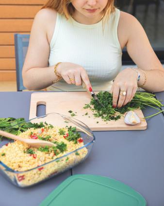 Instead of layering up leaves, veg and protein, you chop them up small and mix them together. If you’ve ever had tabbouleh or a Greek salad, then you already know what we’re talking about. It’s all about getting each ingredient working together in every bite – the smaller the pieces, the more variety you get.
