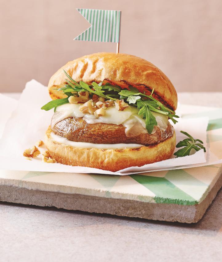Grill Large Flat Mushrooms 250g, £1.20 (48p/100g); add Tesco Finest Reserve Swiss Gruyère Cheese 195g, £3.80 (£1.95/100g), until melted. Sprinkle with chopped Walnuts 200g, £2.75 (£1.38/100g), and Wild Rocket 60g, £1.10 (£1.83/100g). Serve in a Brioche Bun 4-pack, 99p (25p each)