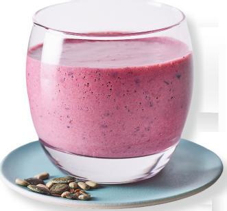 Small glass (150ml) of fruit smoothie containing high-protein yogurt and seeds