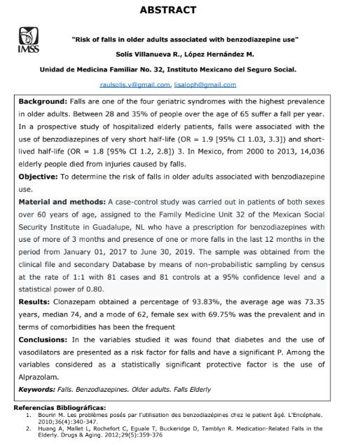 Riesgo de caídas en adultos mayores asociados a uso de benzodiacepinas INSTITUTO MEXICANO DEL SEGURO SOCIAL UNIDAD DE MEDICINA FAMILIAR N° 32 ESPECIALIDAD DE MEDICINA FAMILIAR