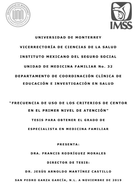 Frecuencia de uso de criterios de centro en el primer nivel de atención. INSTITUTO MEXICANO DEL SEGURO SOCIAL UNIDAD DE MEDICINA FAMILIAR N° 32 ESPECIALIDAD DE MEDICINA FAMILIAR