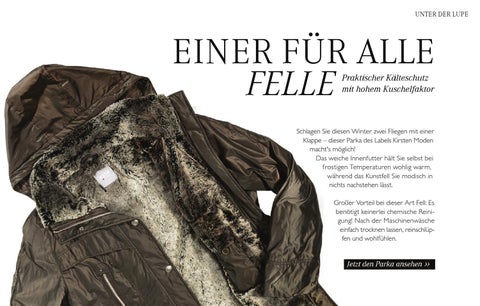 Schlagen Sie diesen Winter zwei Fliegen mit einer Klappe – dieser Parka des Labels Kirsten Moden macht's möglich! Das weiche Innenfutter hält Sie selbst bei frostigen Temperaturen wohlig warm, während das Kunstfell Sie modisch in nichts nachstehen lässt. Großer Vorteil bei dieser Art Fell: Es benötigt keinerlei chemische Reinigung! Nach der Maschinenwäsche einfach trocknen lassen, reinschlüpfen und wohlfühlen.