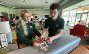 The Introduction to Program ming class experie nced the engineering and design process as they designed and built catapults using craft sticks, rubber bands, and spoons. They used their catapults to launch cotton balls. The winning team launched its cotton ball 113 inches.