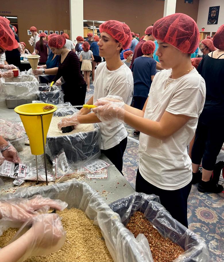 On the early morning of March 10, rain and daylight saving changes didn't deter 75 MCC freshmen from showing up at Holy Name of Jesus ready to make a difference. Together with Rise Against Hunger, they packaged an impressive 40,000 meals!