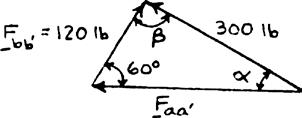 The 300-lb force is to be resolved into components along lines a-a′ and b-b′ (a) Determine the angle α by trigonometry knowing that the component along line b-b′ is to be 120 lb. (b) What is the corresponding value of the component along a-a′?