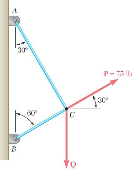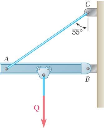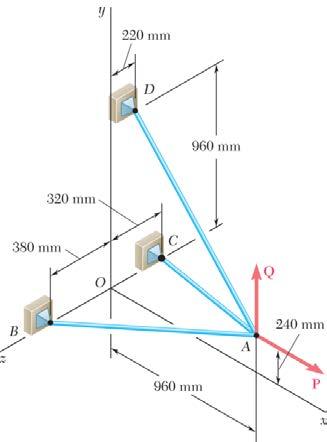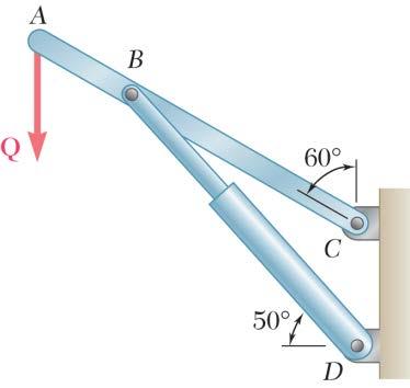 Note: This solution assumes that Q is directed upward as shown (0), Q ≥ if negative values of Q are considered, cable AD remains taut, but AC becomes slack for 460 N. Q =−