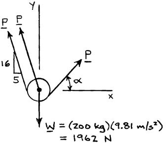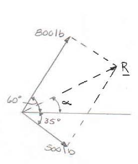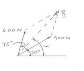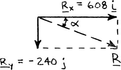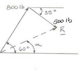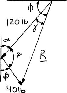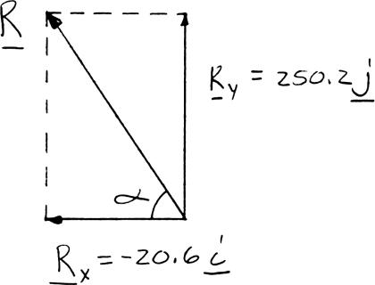 xR = 250 lb(200 lb)sin(400 lb)cos xF Σ=+−αα 250 lb(200 lb)sin(400 lb)cos xR =+−αα (1) y R = (200 lb)cos(400 lb)sin y F Σ=+αα