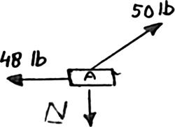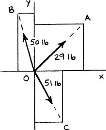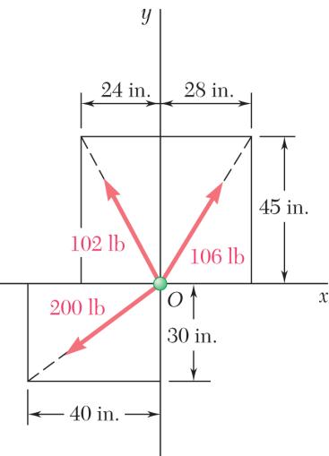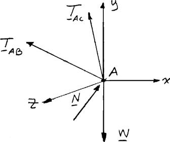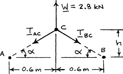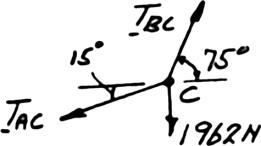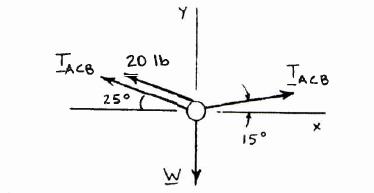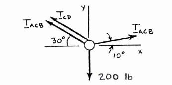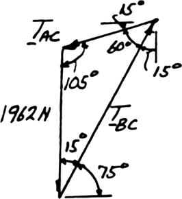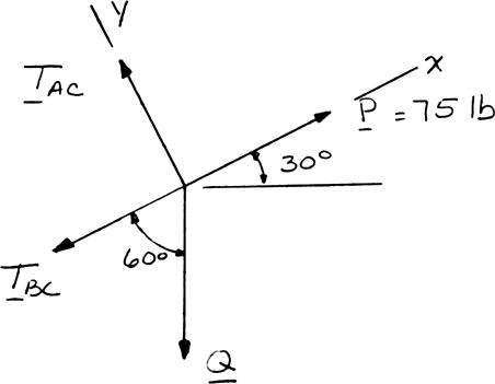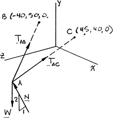 Substituting 180 lb W = in Equations (1), (2), and (3) above, and solving the resulting set of equations using conventional algorithms gives,