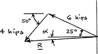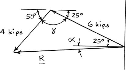 Then 222 2 (4kips)(6kips)2(4kips)(6kips)cos105 64.423kips 8.0264kips