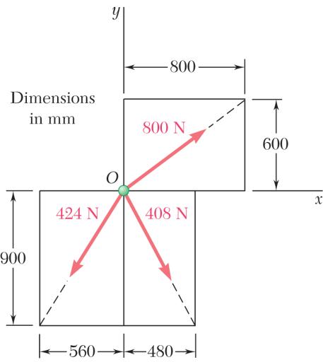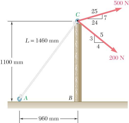 We assume that 0 ADT = and write 0: (1200 N)0 AABACQ Σ=+++= FTTji (960 mm)(240 mm)(380 mm)1060 mm (960 mm)(240 mm)(320 mm)1040 mm