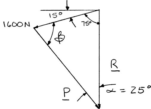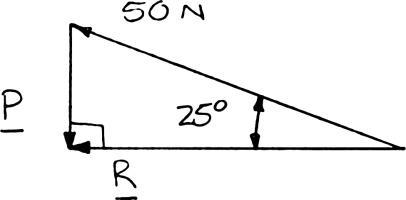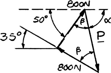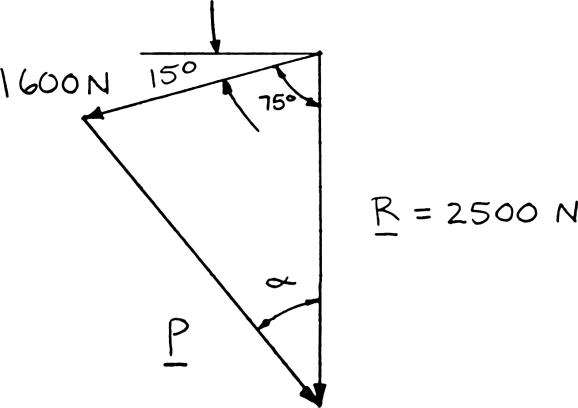 A trolley that moves along a horizontal beam is acted upon by two forces as shown. Determine by trigonometry the magnitude and direction of the force P so that the resultant is a vertical force of 2500 N.