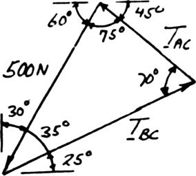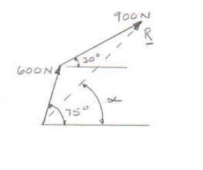 Using the law of cosines: 222 (1600 N)(2500 N)2(1600 N)(2500 N)cos 75°