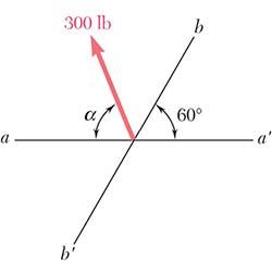 The 300-lb force is to be resolved into components along lines a-a′ and b-b′ (a) Determine the angle α by trigonometry knowing that the component along line a-a′ is to be 240 lb. (b) What is the corresponding value of the component along b-b′?