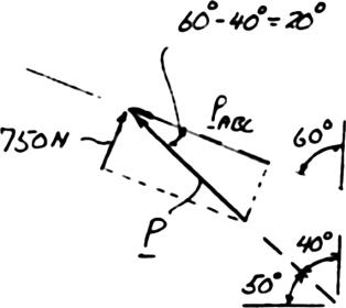The hydraulic cylinder BD exerts on member ABC a force P directed along line BD. Knowing that P must have a 750-N component perpendicular to member ABC, determine (a) the magnitude of the force P, (b) its component parallel to ABC
