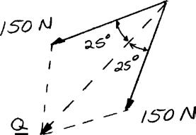 PROBLEM2.4: Two structural members B and C are bolted to bracket A. Knowing that both members are in tension and that P = 6 kips and Q = 4 kips, determine graphically the magnitude and direction of the resultant force exerted on the bracket using (a) the parallelogram law, (b) the triangle rule.