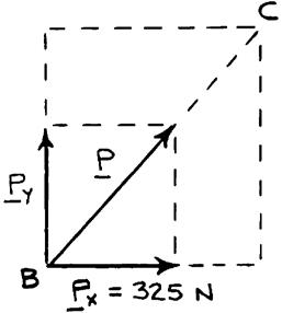 Member BC exerts on member AC a force P directed along line BC. Knowing that P must have a 325-N horizontal component, determine (a) the magnitude of the force P, (b) its vertical component. SOLUTION