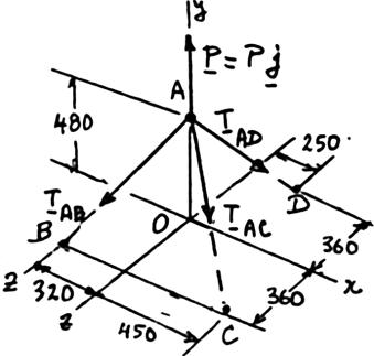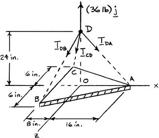 The forces applied at D are: ,,,andDBDCDA TTTP where (36 lb). P == Pjj To express the other forces in terms of the unit vectors i, j, k, we write (16in.)(24in.) 28.844in. (8in.)(24in.)(6in.)26.0in. (8 in.)(24in.)(6in.) 26.0in.