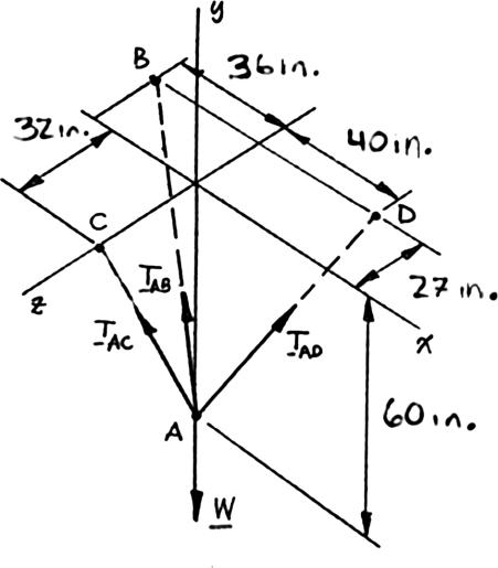 where 180.0 lb. =− Wj To express the other forces in terms of the unit vectors i, j, k, we write (18in.)(22in.)
