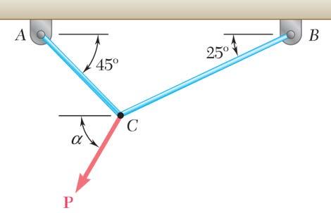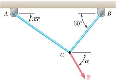 A hoist trolley is subjected to the three forces shown. Knowing that α = 40°, determine (a) the required magnitude of the force P if the resultant of the three forces is to be vertical, (b) the corresponding magnitude of the resultant.