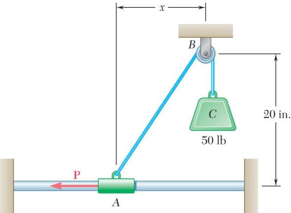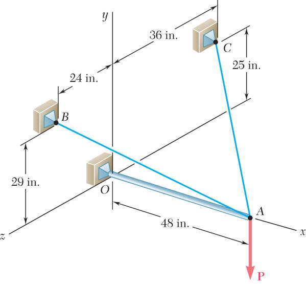 Cable AC exerts on beam AB a force P directed along line AC. Knowing that P must have a 350-lb vertical component, determine (a) the magnitude of the force P, (b) its horizontal component.