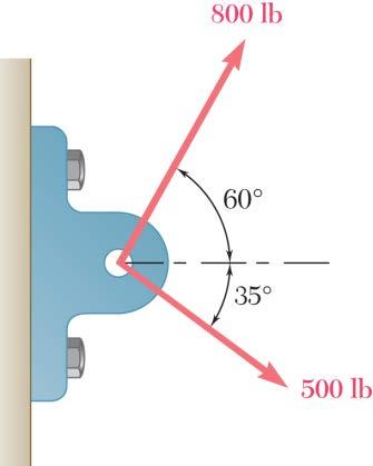 Two forces are applied as shown to a bracket support. Determine graphically the magnitude and direction of their resultant using (a) the parallelogram law, (b) the triangle rule.