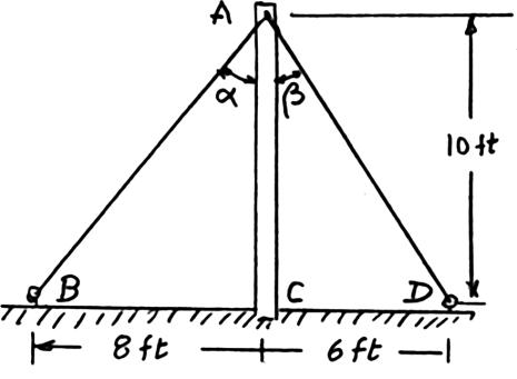 The cable stays AB and AD help support pole AC. Knowing that the tension is 120 lb in AB and 40 lb in AD, determine graphically the magnitude and direction of the resultant of the forces exerted by the stays at A using (a) the parallelogram law, (b) the triangle rule.