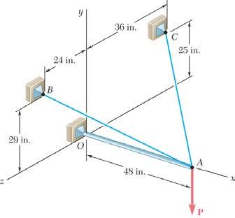 Member BD exerts on member ABC a force P directed along line BD Knowing that P must have a 300-lb horizontal component, determine (a) the magnitude of the force P, (b) its vertical component.