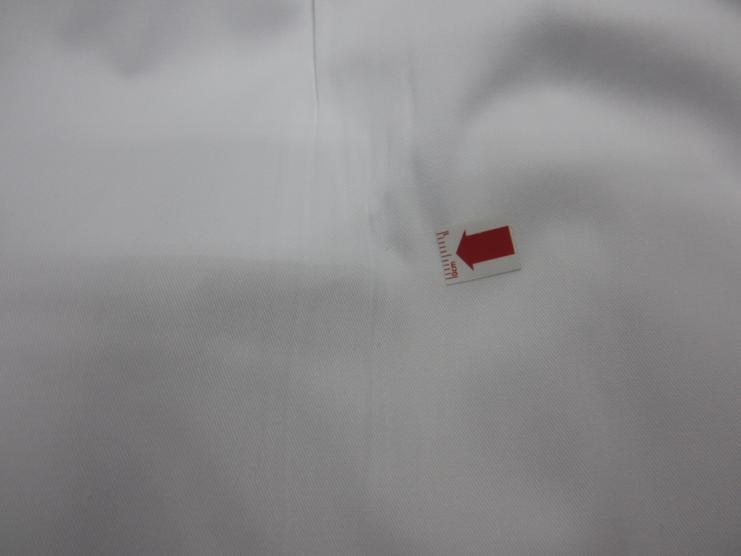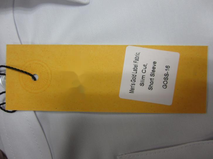 The sticker side of the tag should be facing upwards and the information on the sticker should match the main label –example Modern Fit/ Slim Fit/Classic Fit and size