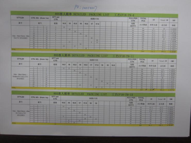 ©www.testcoo.com All rights reserved Doc#: TC-IN-RF-H001 V5 2022-08-23 Email: service@testcoo.com Tel: 0571-8578 7282 The results reflects our findings at time and place of inspection. This report does not relieve seller/manufacturers from their contractual liabilities or prejudice buyers' right for compensation for any apparent and/or hidden defects not detected during our random inspection or occuring thereafter. This report does not evidence shipment, Final approval is required by client before releasing shipment. Page 11 of 8 INSPECTION REPORT Report No: Report Date: –Modern Fit-CVC SPANDEX Men – Short Sleeve –Slim Fit-CVC SPANDEX PO100114407 1304 1304 1304 44 0 0 Men – Short Sleeve -Modern Fit TALL-CVC SPANDEX PO100114407 630 630 630 21 0 0 Men – Short Sleeve -Slim Fit TALL-CVC SPANDEX PO100114407 360 360 360 12 0 0 Total 6002 6002 6002 203 0 0 Total 15 cartons were selected randomly Selected carton number: Women – short Sleeve -CVC SPANDEX 11,19 Women’s TALL Length Short Sleeve-CVC SPANDEX0 4 Men – Short Sleeve – Classic Fit-CVC 18,13 Men – Short Sleeve -Classic Fit TALL-CVC 10,3 Men – Short Sleeve –Modern Fit-CVC SPANDEX 1,39 Men – Short Sleeve –Slim Fit-CVC SPANDEX 42,25 Men – Short Sleeve -Modern Fit TALL-CVC SPANDEX 7,18 Men – Short Sleeve -Slim Fit TALL-CVC SPANDEX 7,11