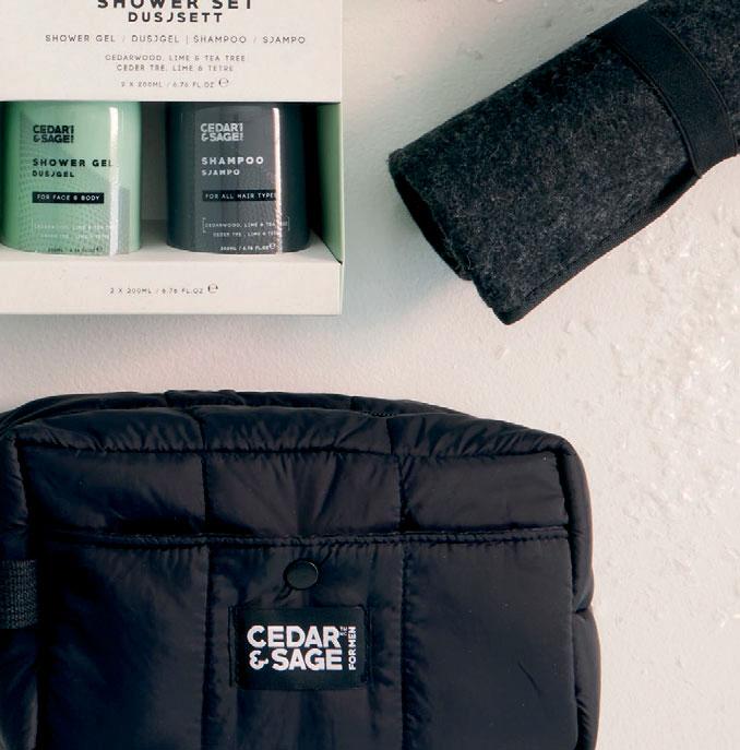 16. Cedar & Sage toalettmappe Maskulin og trendy toalettmappe i sort, vattert stoff. Kr 22990