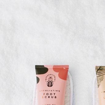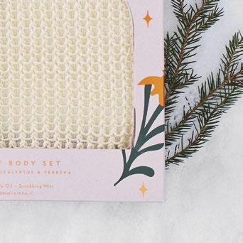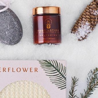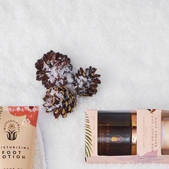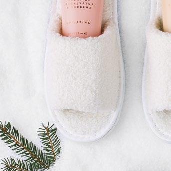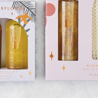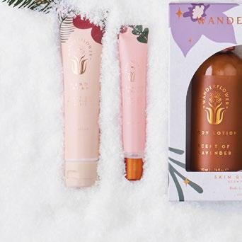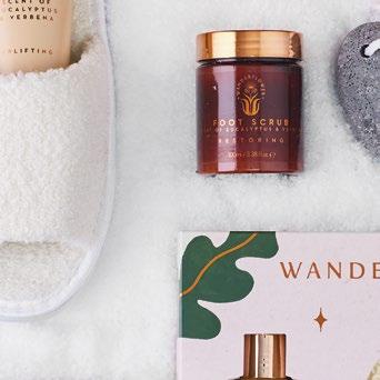 1. Wanderflower Luxury Slipper Set Gavesett med myke tøfler, fotskrubb og fotkrem, duft av eukalyptus og verbena (tøfler One-Size, 150 ml + 150 ml). Kr 29990 • 2. Wanderflower Hand & Foot Duo Gavesett med hånd- og fotkrem, nydelig duft av sitrongress og søt mandel (75 ml + 100 ml). Kr 11490 • 3. Wanderflower Foot Revival Set Gavesett med fotskrubb, fotkrem og pimpstein, forfriskende duft av eukalyptus og verbena (100 ml + 100 ml). Kr 15990 • 4. Wanderflower Hand & Lipmask Duo Gavesett med håndkrem og leppemaske med duft av fiken og solbær (75 ml + 25 ml). Kr 11990 • 6. Wanderflower Glow Body Set Gavesett bestående av eksfolierende vott og kroppsolje med duft av eucalyptus og verbena (200 ml). Kr 24990