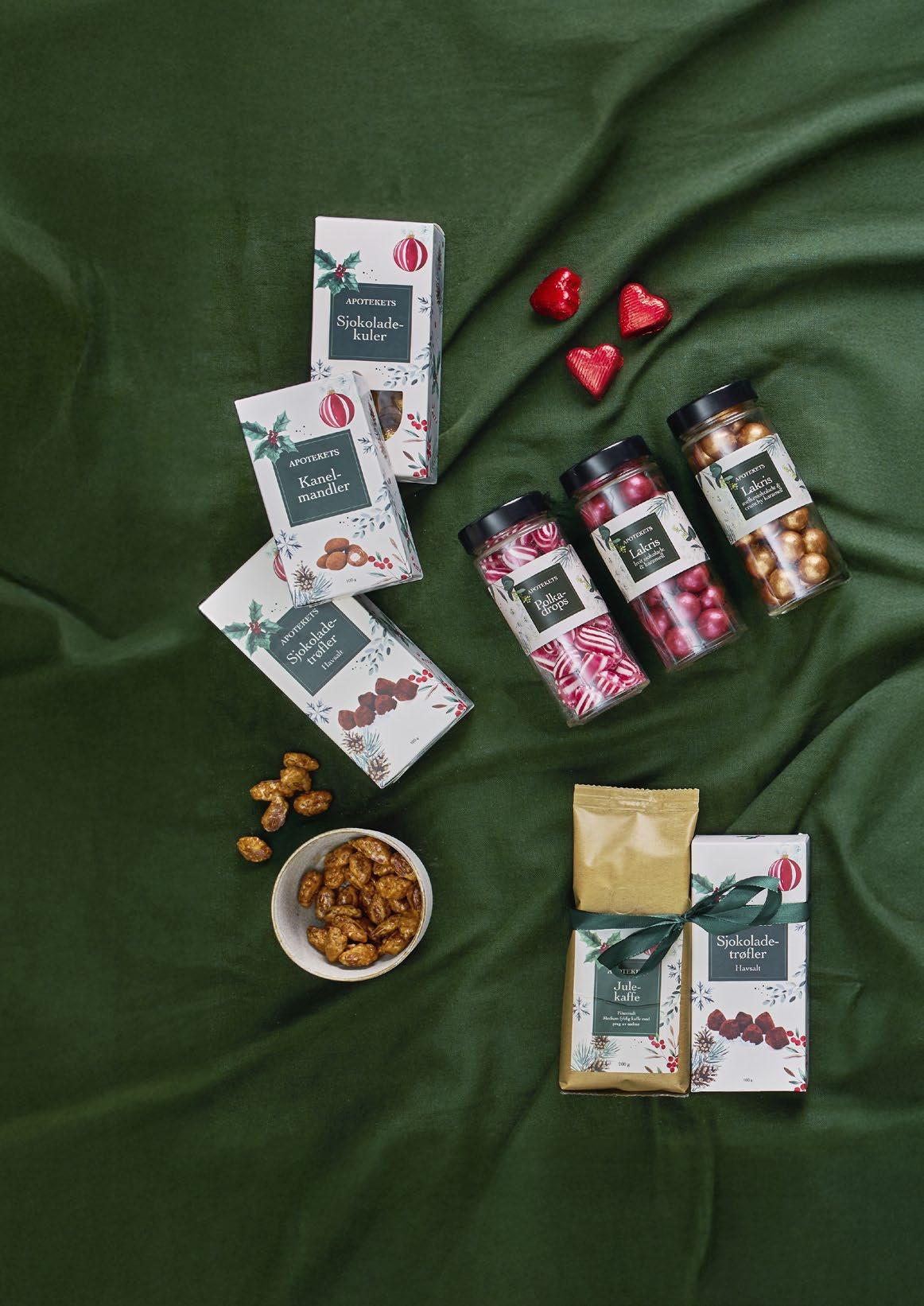 4. Apotekets lakriskuler Melkesjokolade/crunchy karamell, 170 g. Kr 9990 • 5. Apotekets brente mandler 130 g. Kr 7490