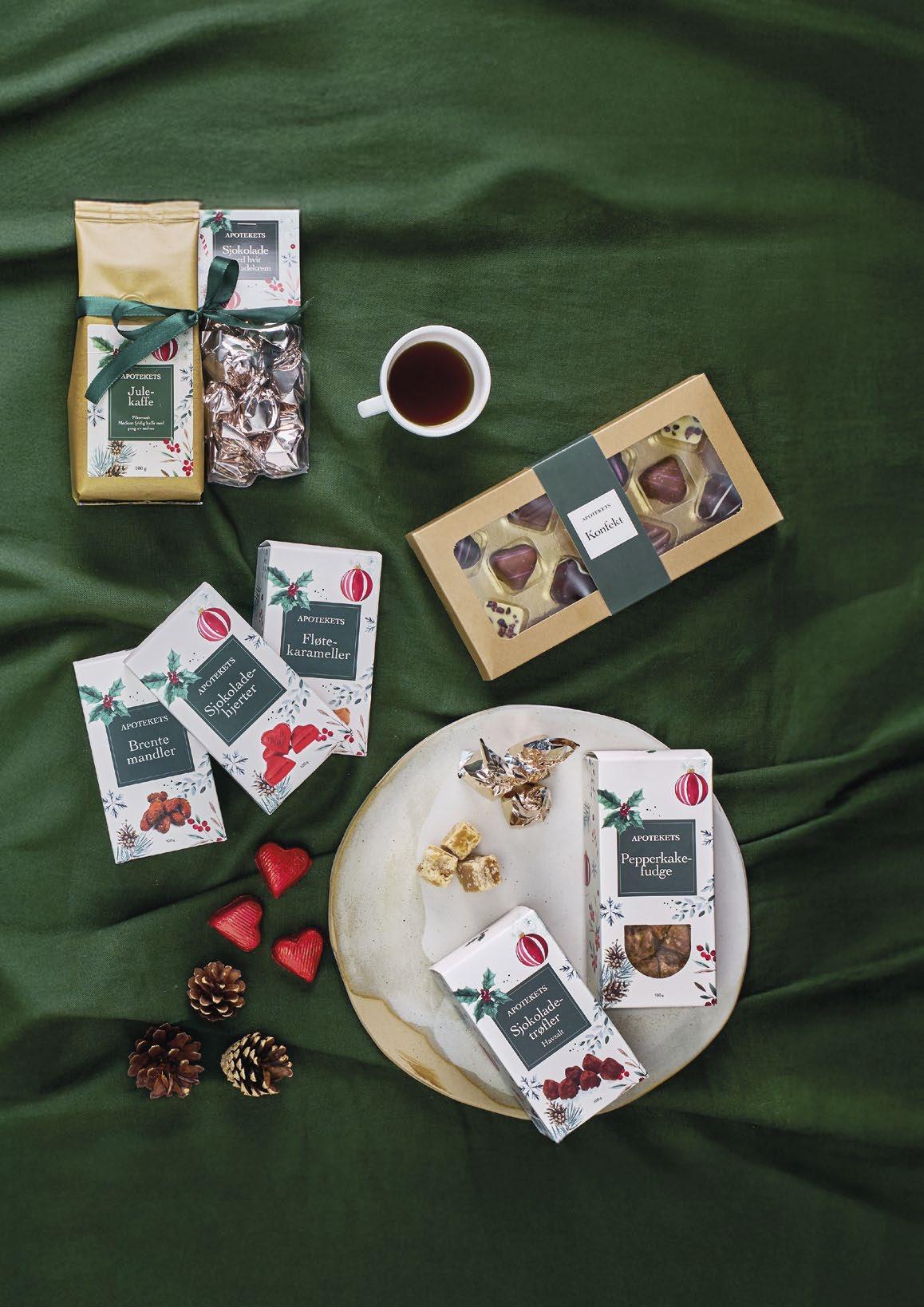 1. Apotekets søte fristelser Gavesett med sjokoladekuler, kanelmandler og sjokoladetrøfler med havsalt (3 x 100 g). Kr 19990