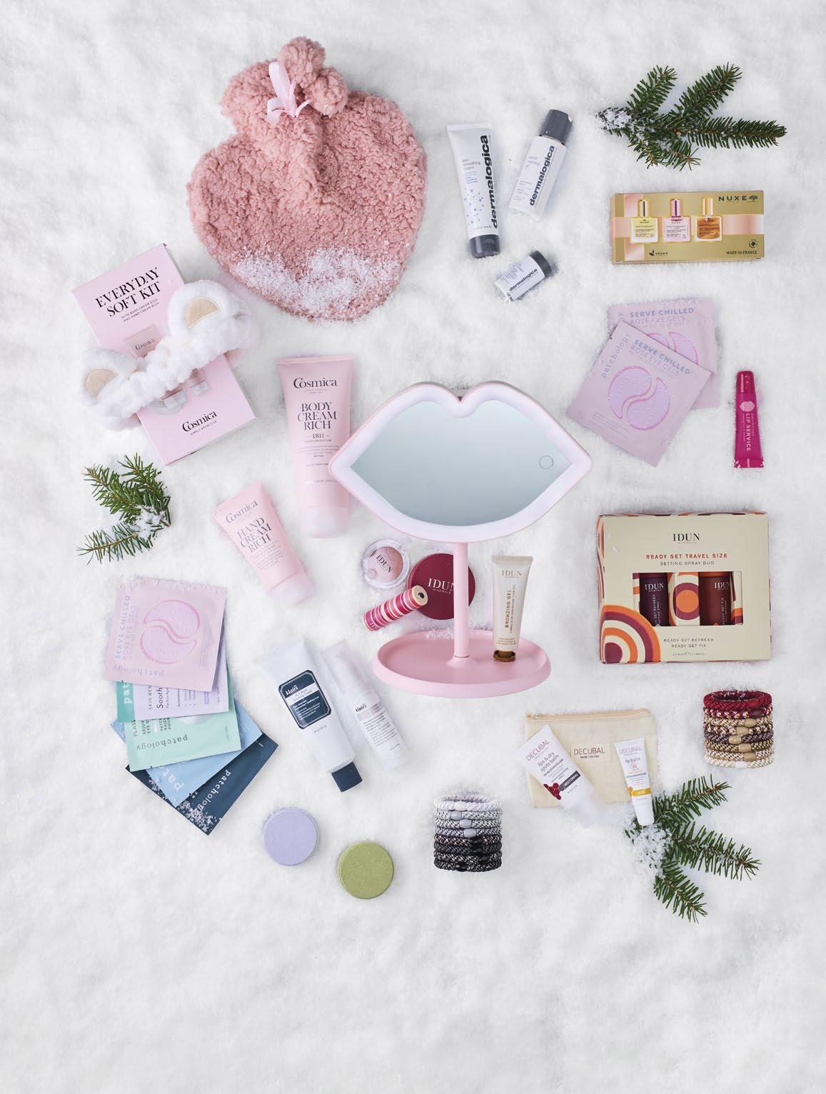 10. Danielle sminkespeil Batteridrevet, dekorativt L.E.D. sminkespeil, batterier medfølger ikke. Kr 29990 • 11. IDUN Setting Spray gavesett To ulike IDUN Setting Spray reisestørrelser (50 ml + 50 ml). Kr 329,- • 12. Patchology Patching All The Way Gavepakke med ulike øyemasker (5 stk) Kr 19990 • 13. Klairs Perfect Duo Kit Freshly Juiced Vitamin Charging Serum og Rich Moist Soothing Cream (30 ml + 80 ml). Kr58990 • 14. Brompton & Langley dusjbomber Med tre forskjellige dufter, vanilje, vinterbær og eukalyptus/mynte.6