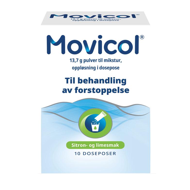 *Movicol skal ikke brukes ved alvorlige fysiske hindringer i tarmen. Væskeinnholdet i en Movicol løsning bør ikke erstatte vanlig væskeinntak. Drikk rikelig med vann. Snakk med lege eller apotek dersom du bruker andre legemidler, er gravid eller planlegger å bli gravid. Kontakt lege etter 2 ukers sammenhengende behandling dersom plagene har blitt verre eller ikke har blitt bedre. Les pakningsvedlegget nøye før bruk.