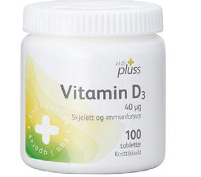 Vidi pluss vitamin D3 40 mcg, 100 tabl. Ord. 17990 Nå 10750