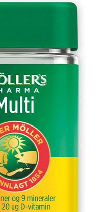 Möller’s Pharma Omega-3 høykonsentrert, 80 kapsler. Ord. 28990 Nå 17350 • Möller’s Pharma tran med D-vitamin naturell, 250 ml. Ord. 17490 Nå 10450 Möller’s Pharma Magnesium 350 mg, 150 tabl. Ord. 21490 Nå 12850 Möller’s Pharma Multi, 200 tabl. Ord. 25990 Nå 15550