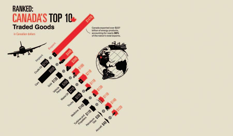 • Canada imports and exports a variety of goods, which contribute to more than $1.5 trillion of activity in 2024.