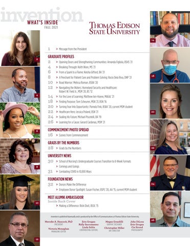 Inside Back Cover > Making a Difference: Rishi Dixit, BSOL ’15 Invention is published biannually and is produced by the Office of Communications at Thomas Edison State University. Merodie A. Hancock, PhD PRESIDENT Victoria Monaghan MANAGING EDITOR