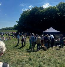 numbers were recorded this year plus the Hog Roast Sold Out! Due to some lastminute planning, we were able to offer Hot Dogs or Hike Only tickets, so no one was turned away on the day! Thirsty hikers returned to chilled rose wine or Uley beer and eagerly tucked into their well-earned food whilst listening to live music from Route 44. Tea/coffee and homemade cakes finished off the feast. The field was awash with picnic blankets, chairs and even tents to protect themselves from the sunshine.