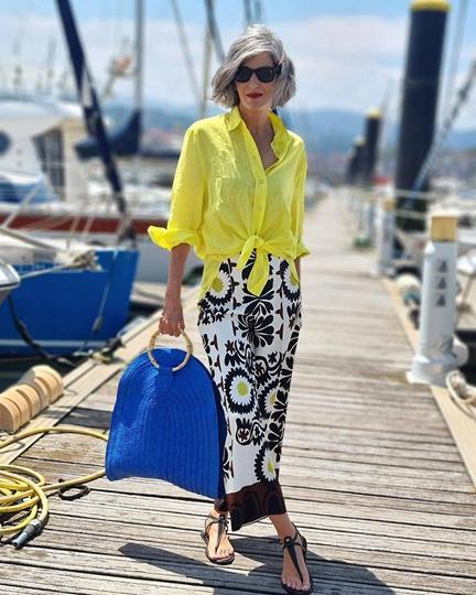 Y si quieres sumarte a la tendencia del azul klein, puedes apostar por una mezcla llena de contrastes al combinarlo con amarillo, aunque también casará a la perfección con blanco y negro En cualquier caso, Carmen Gimeno nos da una lección de estilo al mezclar este tono con amarillo (su opuesto) y neutros
