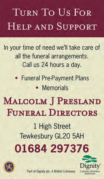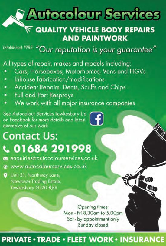 Same day dedicated vehicles across the UK and Europe • Overnight parcels from £4.99 • All vehicles available from small van up to an artic • Available 24 hours a day 7 days per week CALL US ON 01684 296677 or 07843 217545 email sales@robertsexpressdelivery.co.uk TEWKESBURY HISTORICAL SOCIETY Thursday 20th April 2023 The Biography of an English Merchant in Bengal, 1754 to 1763 by Peter Covey-Crump Methodist Church, Tewkesbury Cross at 7.45pm. Members £2.50, Visitors £4.00. All welcome. For more details visit tewkesburyhistory.org NORTHWAY LANE MOT & SERVICE CENTRE LTD CAR MOT TEST £45 BIKE MOT TEST £25 SAME DAY APPOINTMENTS FREE RE-TEST WITHIN TEN WORKING DAYS We offer further reductions on MOT test fees when carried out with one of our services FIXED PRICE SERVICE PACKAGES FOR YOUR VEHICLE Check out our price menu on Page 20 UNIT 2, CYMBIO BUSINESS CENTRE (Next to old Car Auction Site) NORTHWAY LANE, TEWKESBURY GL20 8JG 01684 295566 www.northwaymot.co.uk
