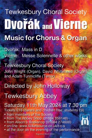 There’s a Tewkesbury Town Training Band Concert at St Nicholas Ashchurch and other choral events feature on page 43.