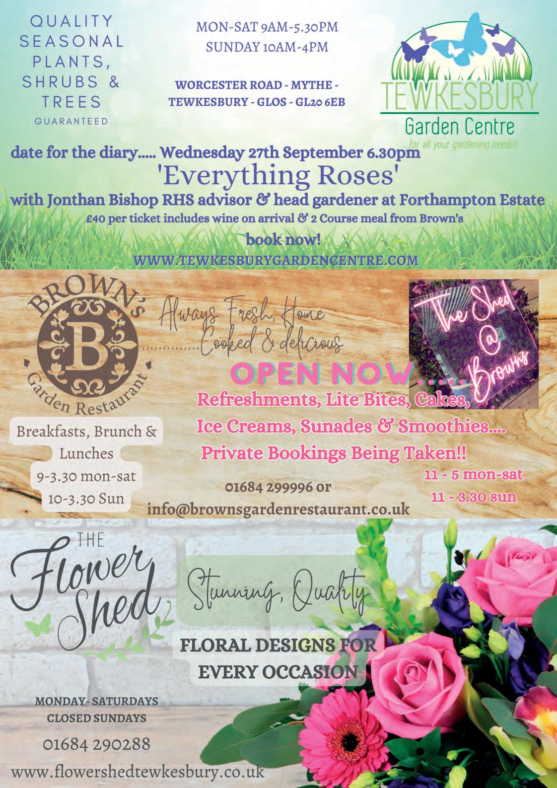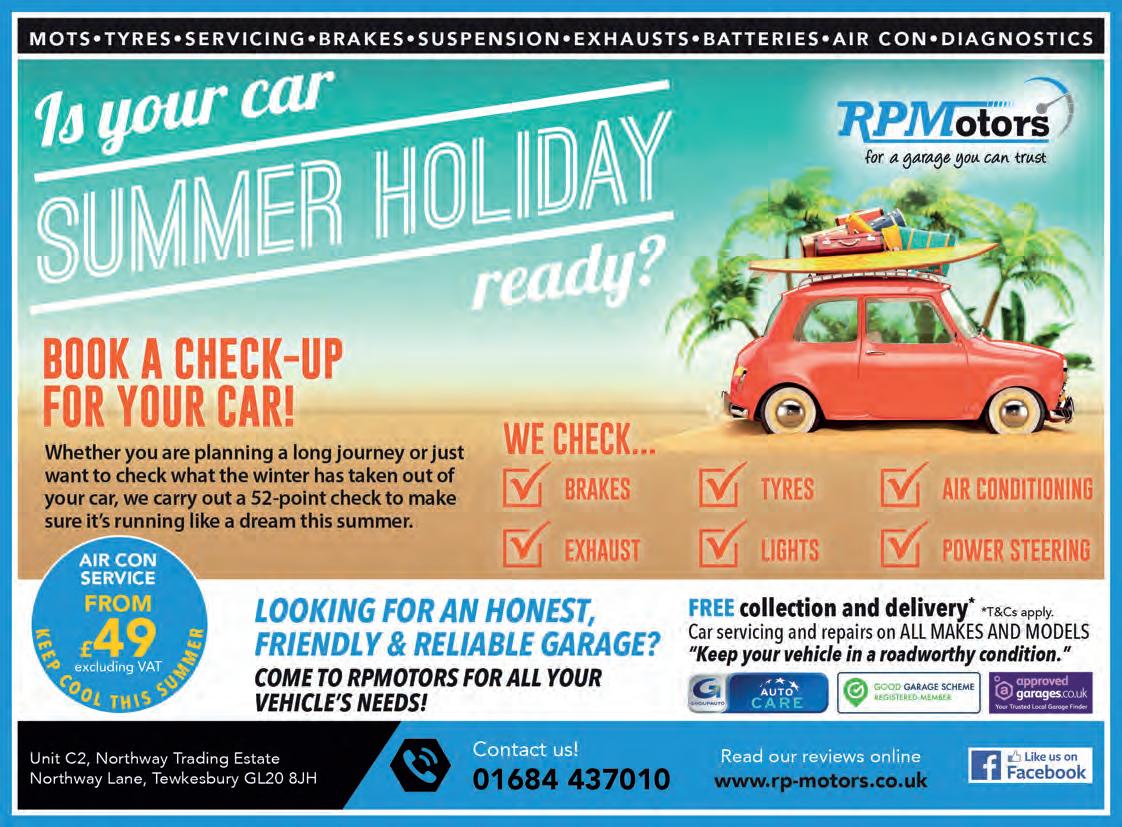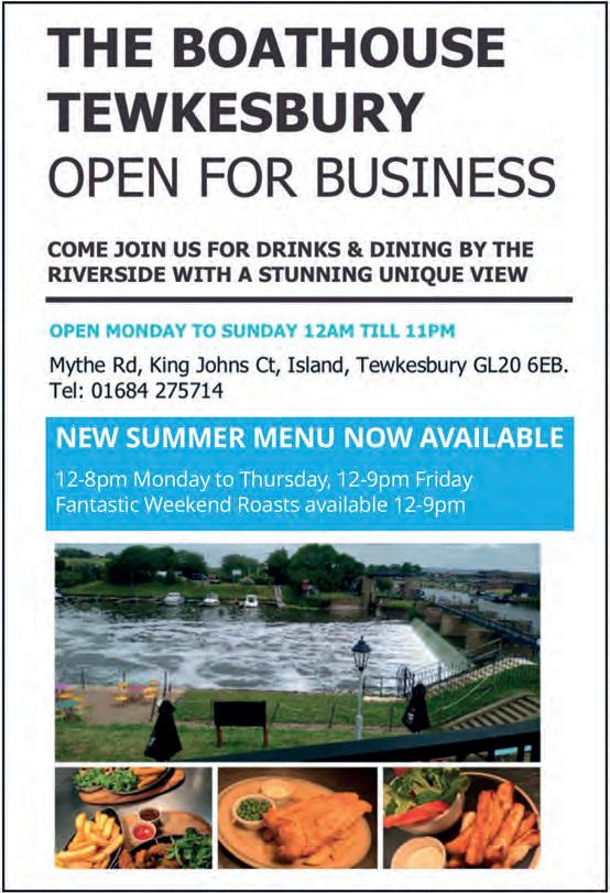 BEWARE OF CHEAP IMITATIONS WE’RE NOT ALL THE SAME Totally Independent No Repair Work Undertaken WE JUST SELL YOU A FAIR AND HONEST MOT Our aim is to pass your vehicle 1st time www.tewkesburymotcentre.com 30 MINUTE WHILE -UWAIT SERVICE TEWKESBURY MOT CENTRE SERVING TEWKESBURY SINCE 1996 Read me online - www.tewkesburydirect.co.uk 01684 850930 Unit B2, Northway Trading Estate Tewkesbury GL20 8JH Near the Railway Station facebook.com/tewkesburymotcentre SEE PAGE 48 PHONE PROBLEMS & REPAIRS SORTED • Cables, Chargers etc • Phones Unlocked • Free Diagnostics TEWKESBURY PHONES 106 HIGH STREET, GL20 5JZ 01684 439790 Computer Problem? Call Tewktech 01684 770740 www.tewktech.com NORTHWAY LANE MOT & SERVICE CENTRE LTD CAR MOT TEST £45 BIKE MOT TEST £25 SAME DAY APPOINTMENTS FREE RE-TEST WITHIN TEN WORKING DAYS We offer further reductions on MOT test fees when carried out with one of our services FIXED PRICE SERVICE PACKAGES FOR YOUR VEHICLE Check out our price menu on Page 8 UNIT 2, CYMBIO BUSINESS CENTRE (Next to old Car Auction Site) NORTHWAY LANE, TEWKESBURY GL20 8JG 01684 295566 www.northwaymot.co.uk SEE PAGE 5 Fri 25thSun 27th August Live Music Sat night LET’S CELEBRATE THE FESTIVAL SEASON NOW OPEN Gloster’s Oldest Inn, beautifully restored Fine Ales and Ciders • Good Food Riverside Gardens See Feature on Page 11 Find us on Facebook High Street, Tewkesbury GL20 5BJ 01684 299202 Feel the Uniqueness OUT AND ABOUT THIS SUMMER Jack Walker’s guide to what’s on and where to go Pages 49 and 51 AUGUST 2023 CALL TEWKESBURY DIRECT ON 01242 621346 Whatever the weather may hold in store this Summer, there’s plenty going on in and around Tewkesbury come rain or shine.